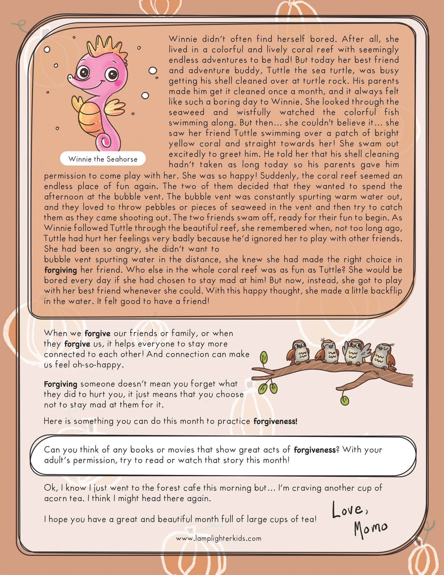 * A “Try it Yourself” section with ideas on how to practice that month's virtue