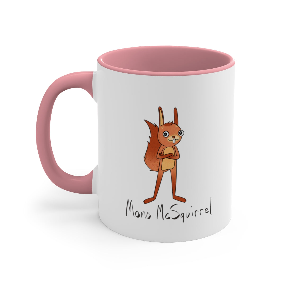 Enjoy your favorite cup of hot cocoa or tea alongside Momo McSquirrel in this two-tone, custom accent mug!
