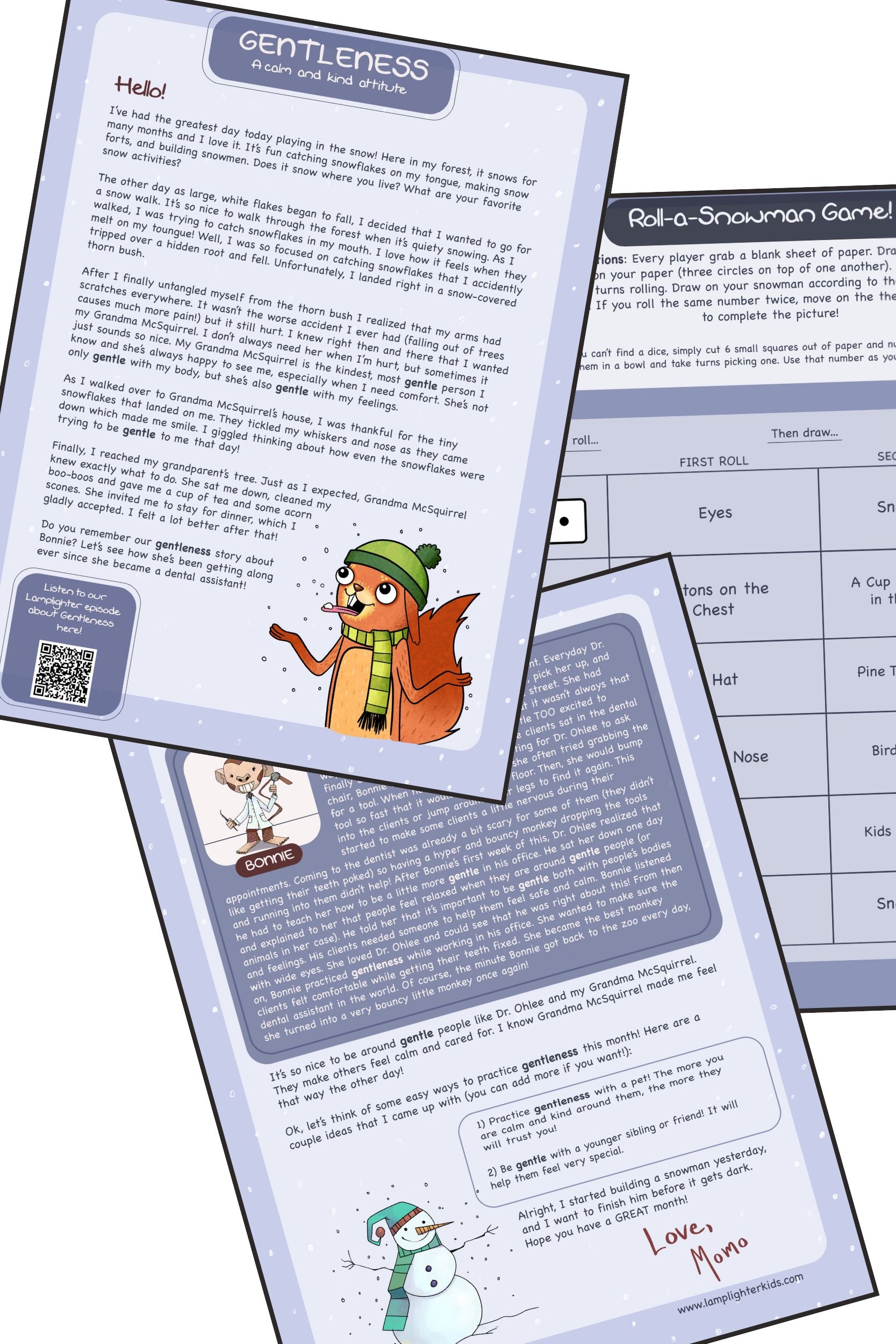 Each Letter from Momo focuses on one virtue and includes a front and back page plus a fun activity page. Here are the 12 virtues Momo writes about in Bundle A: