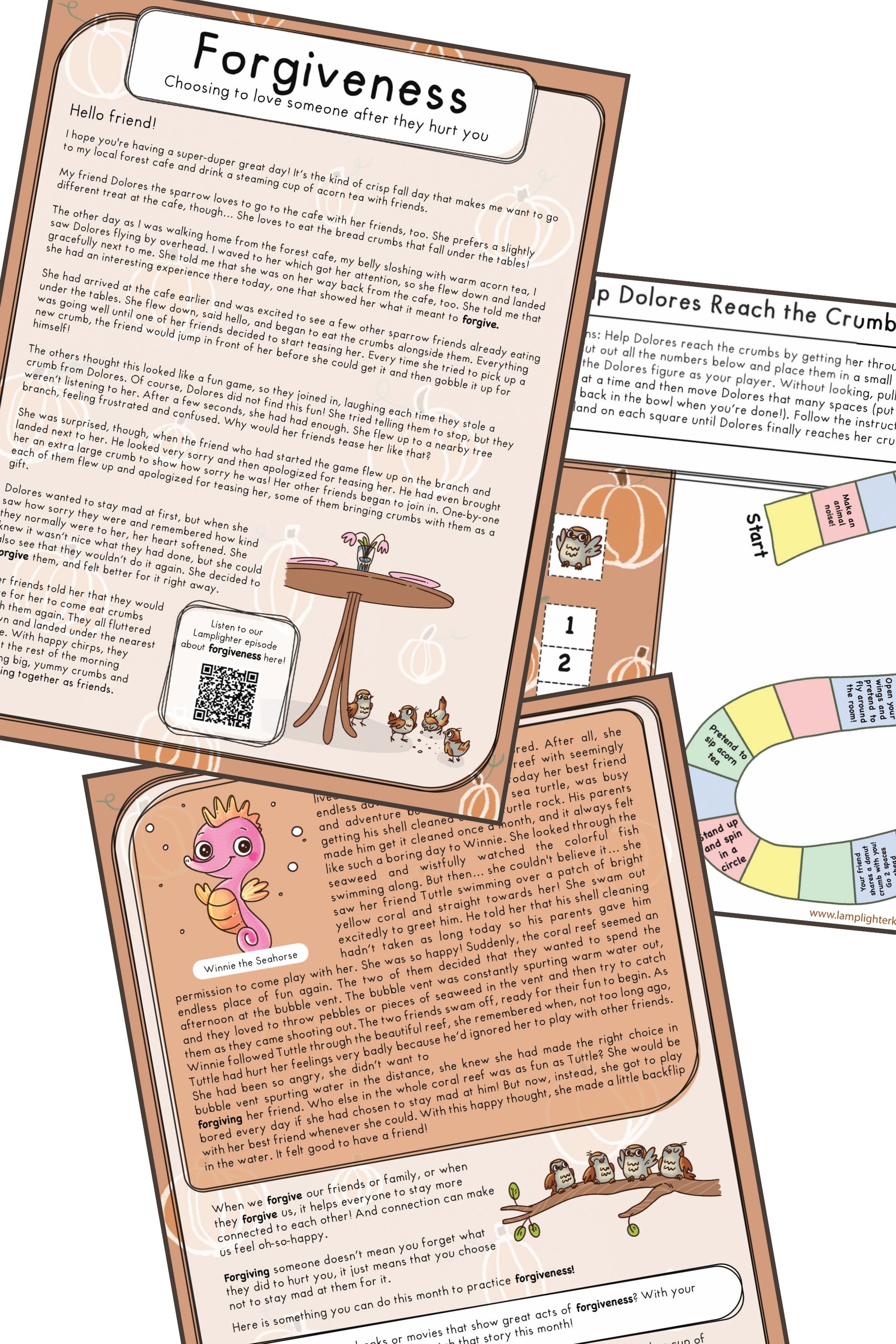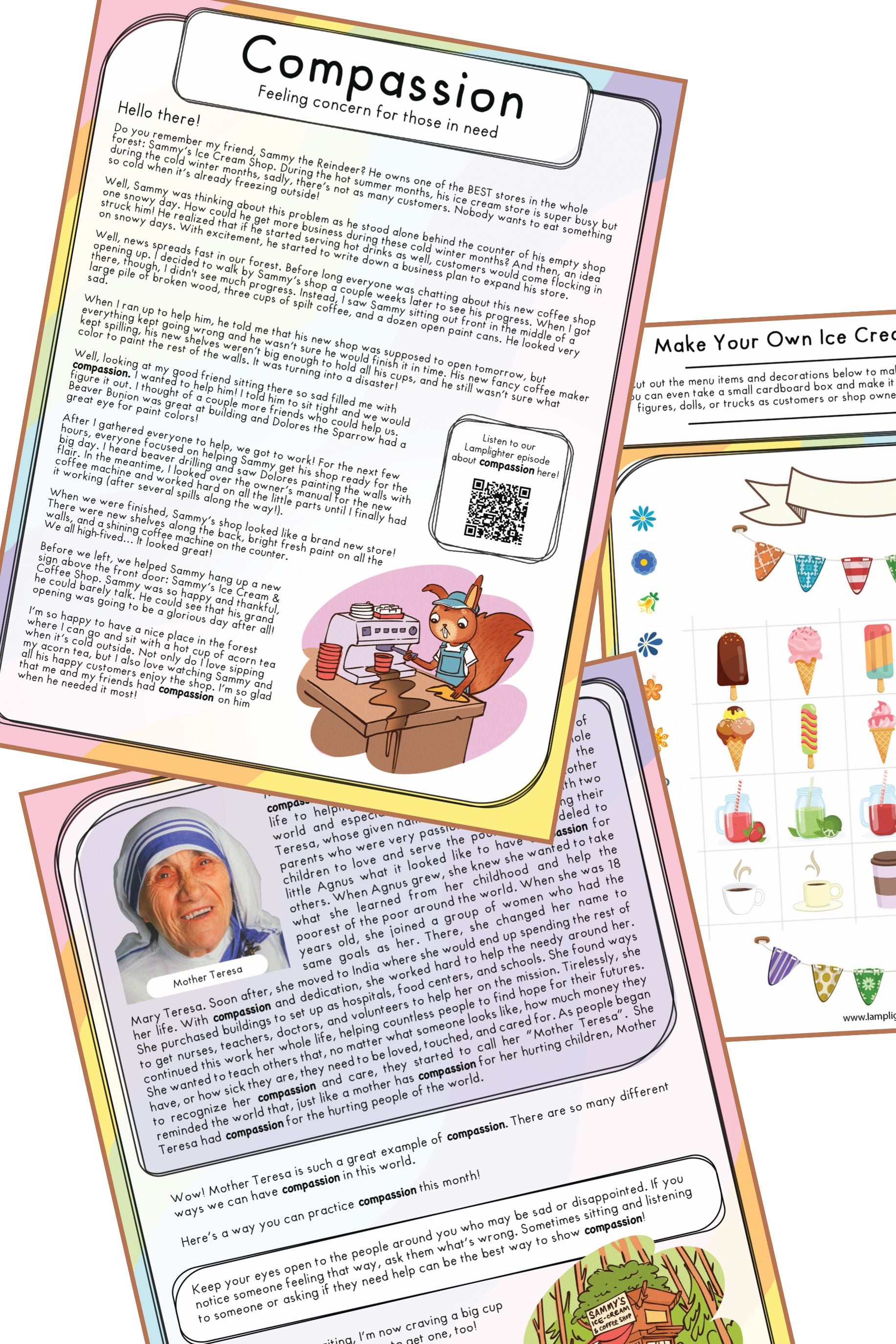 Each Letter from Momo focuses on one virtue and includes a front and back page plus a fun activity page. Here are the 12 virtues Momo writes about in Bundle C: